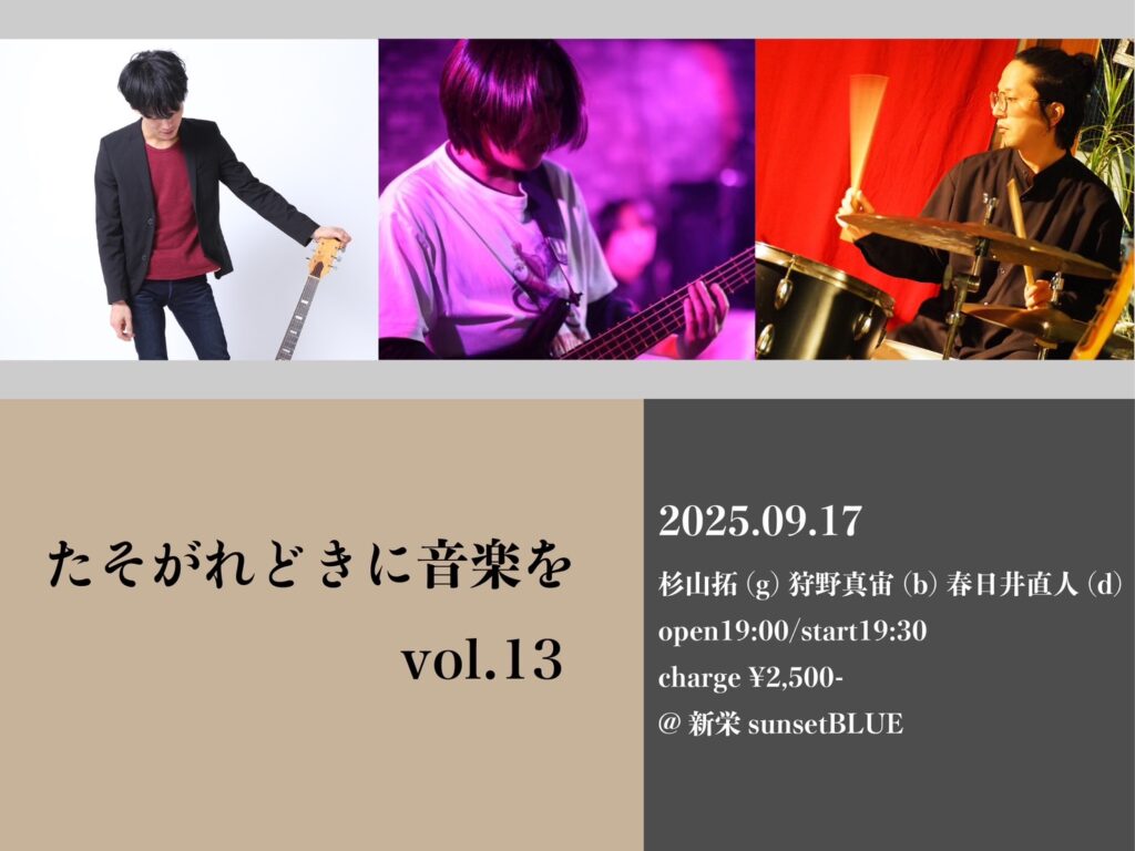 杉山拓(g) 狩野真宙(b) 春日井直人(d)
