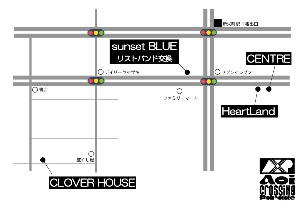 ARTIST AUDITION ABOUT NOTICE TICKET TIME TABLE “Aoi Crossing Parade” supported by Eggs Fan /VOAT名古屋 日程:12/6(土) 会場:HeartLand /sunset BLUE /CLOVER HOUSE /CENTRE Open 12:30 / Start 13:00 チケット:4,000円(D代別)